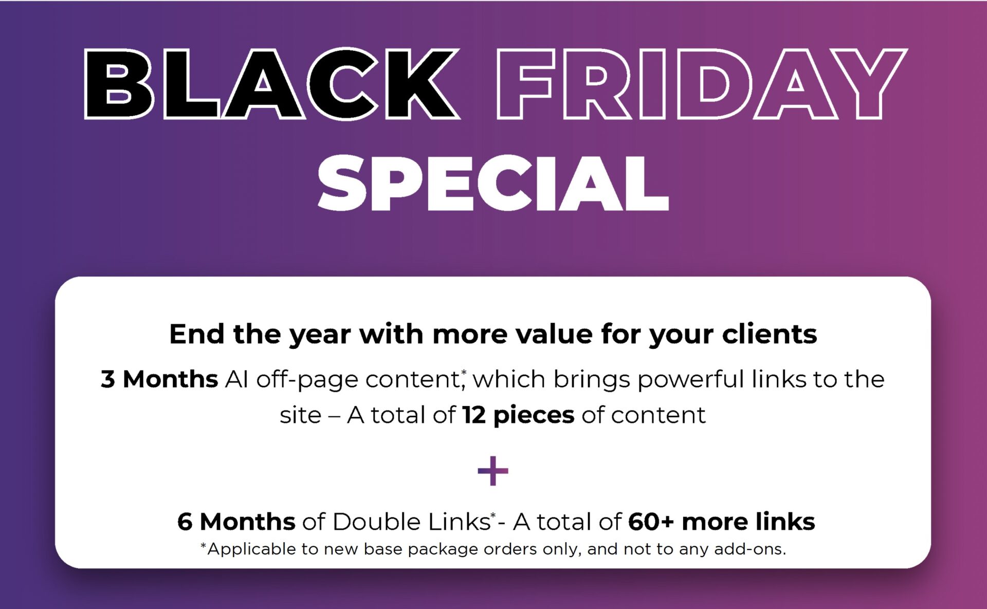 And now is the right time to look at adding and SEO package with our Black Friday SEO deals.