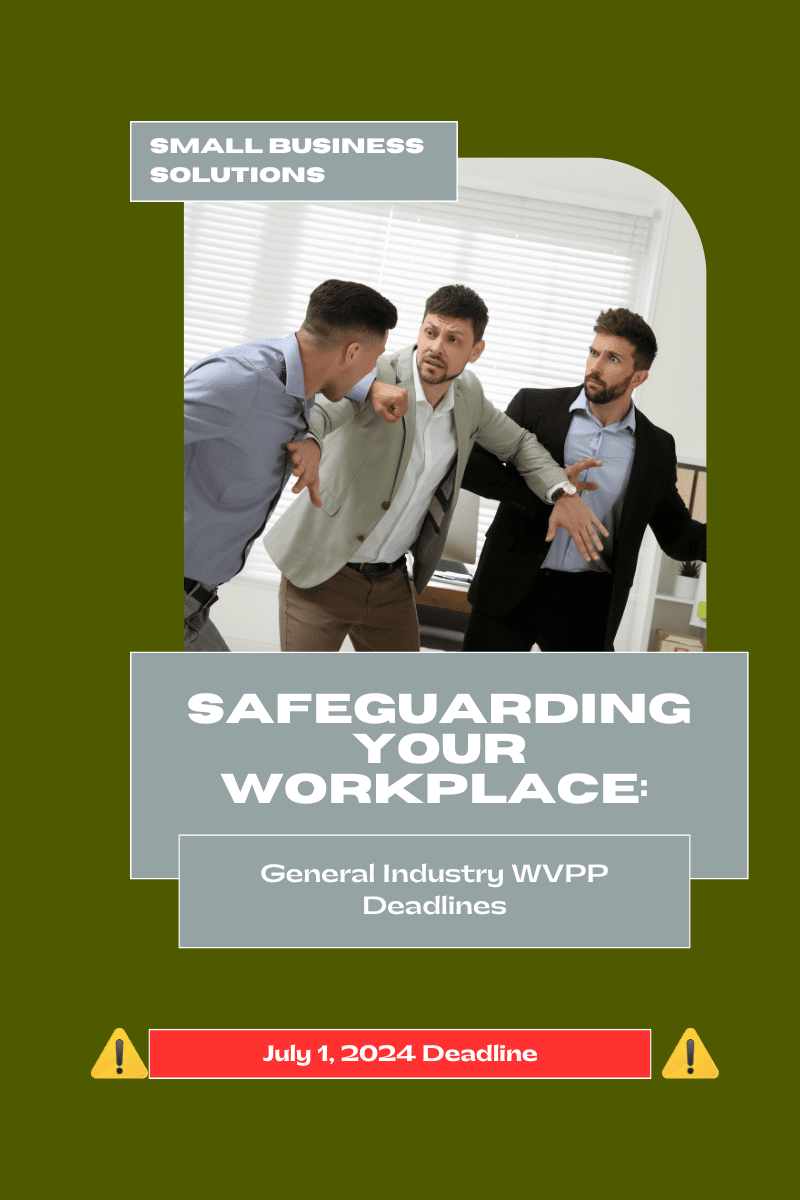 As a small business owner, you’re familiar with the challenges of juggling multiple roles and responsibilities, including your Human Resource Department. With Cal-OSHA’s upcoming July 1, 2024 deadline for all Workplace Violence Prevention Plans (WVPP), When you’re focused on growth and scaling, some crucial aspects can often feel overwhelming. Yet, creating a safe and compliant workplace is non-negotiable. One key area to address is implementing a robust Workplace Violence Prevention Plan (WVPP).